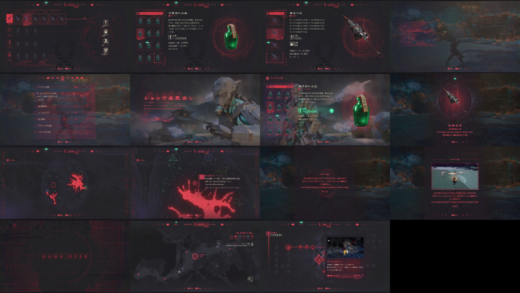 UI (User Interface) refers to the various pieces of information displayed on the screen. Examples include health bars, various gauges, icons, item acquisition indicators, achievement notifications, and menu screens. The main job of a UI artist is to design and implement these elements in a way that is easy to understand and that fits the game’s atmosphere.