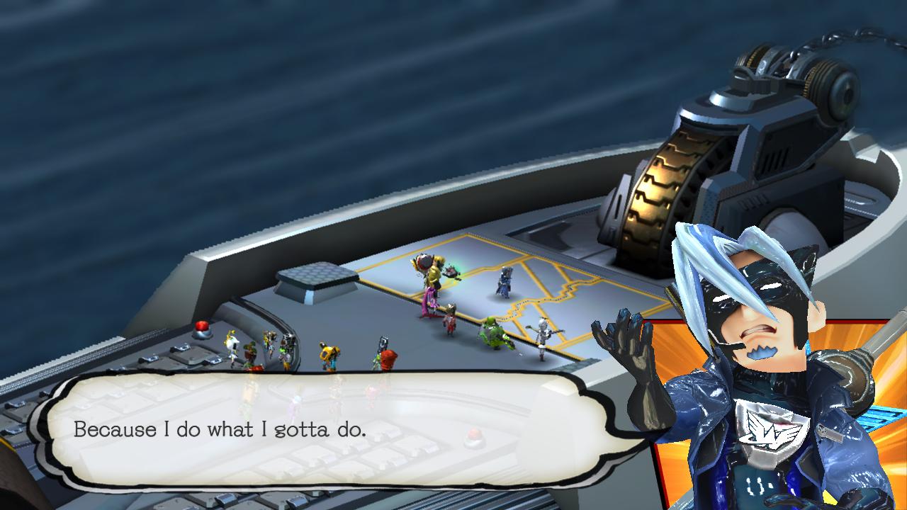 Blue insists on making a scene for everyone to see, so in combat he acts arrogant, taunting the enemy, and is prone to posturing into different poses that might look “cool.” Unfortunately, reactions to his antics are conspicuous in their absence.